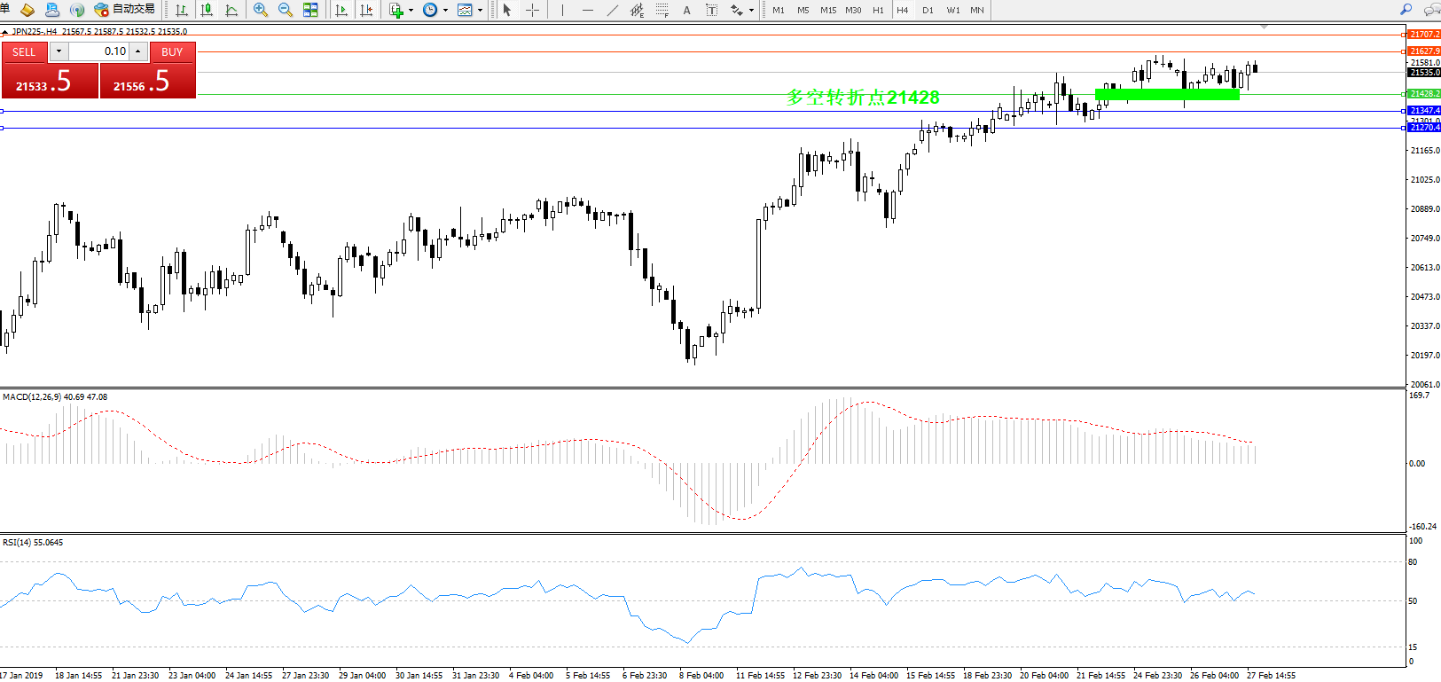 日经指数JPN225——4小时K线图: