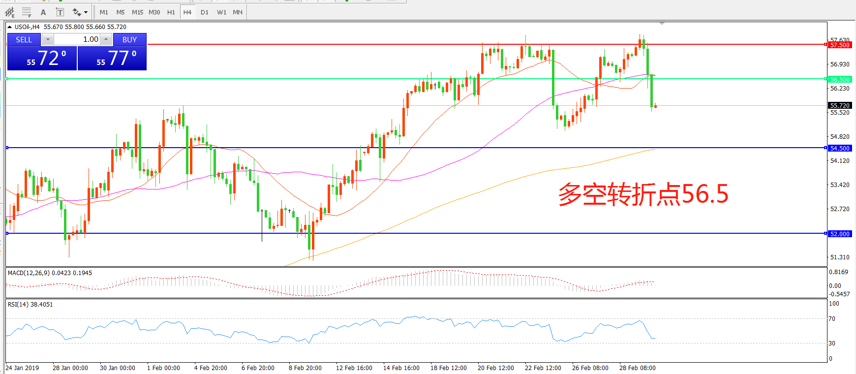 交易策略:在56.50之下看跌,目标54.00 52.00