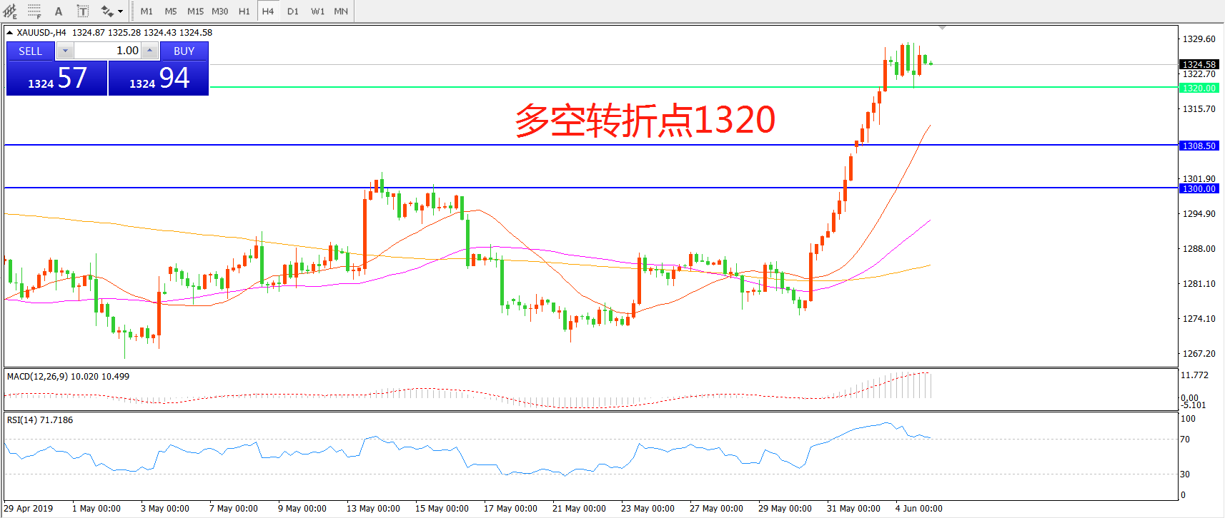 交易策略:在1320.00之上看涨,目标1340.00   1354.00