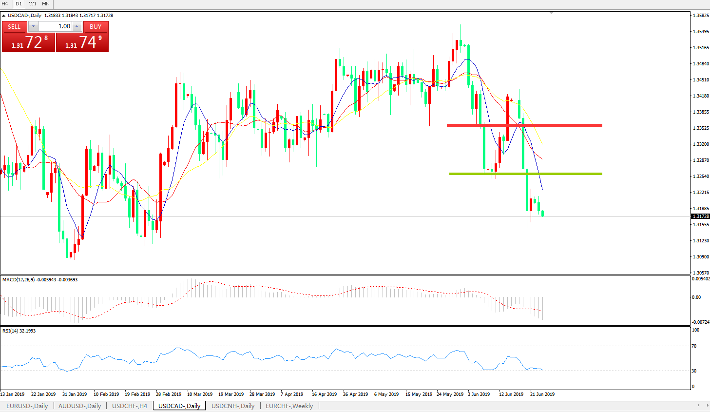 技术面简析:日线图均线有序空头排列价格反弹乏力后再度下行MACD在0轴下方运行且动能柱加速放量RSI持续走低,预计汇价将进一步下行
