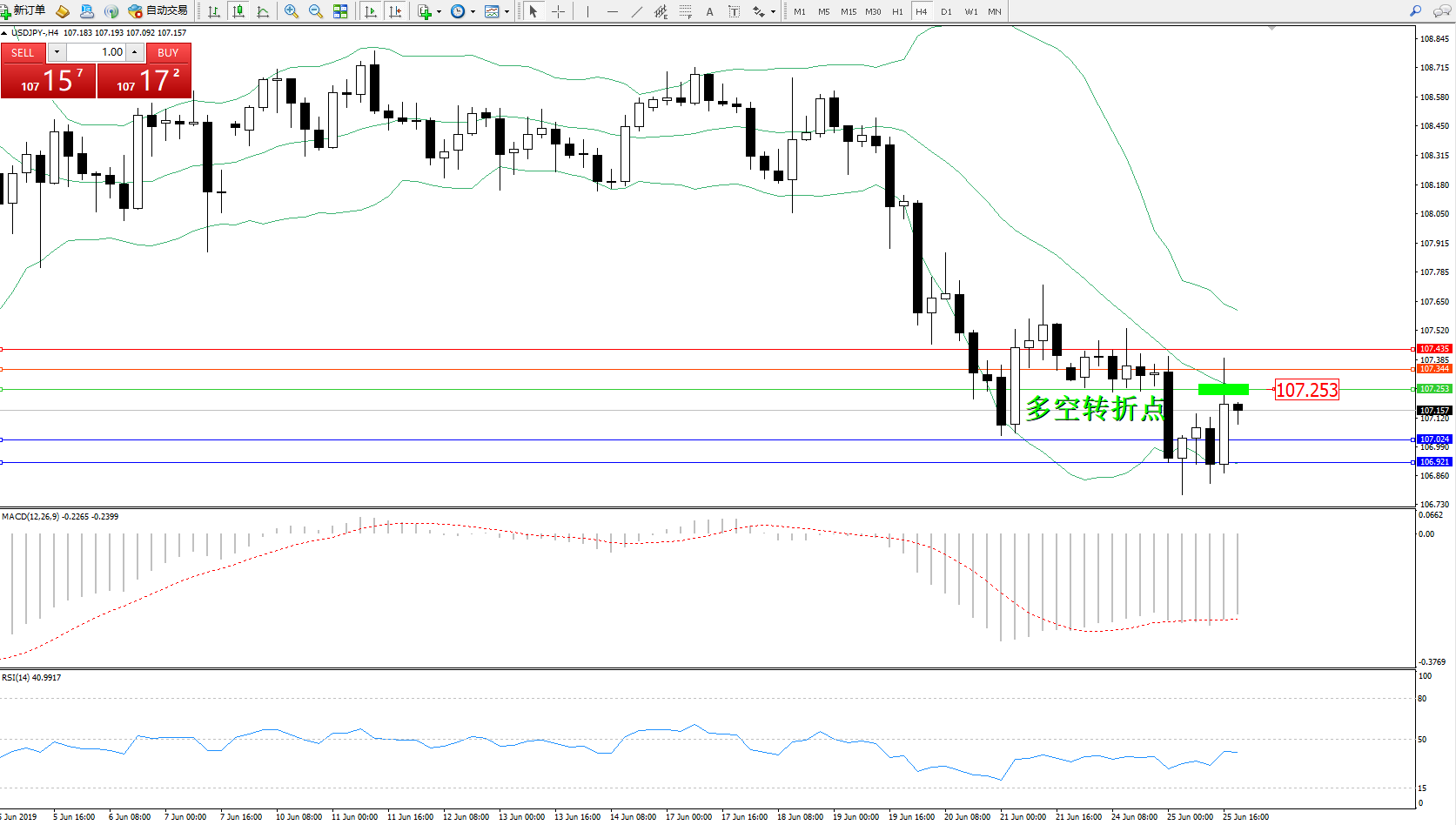 交易策略:107.253下方看跌,目标107.024、106.921