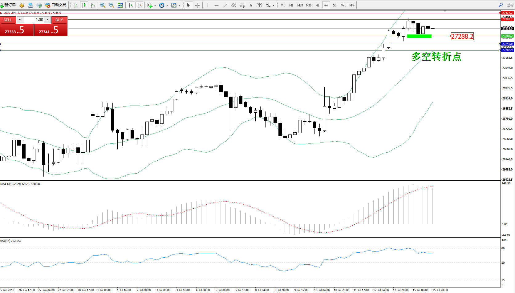 道琼斯指数715日(周一)收盘上涨27.10点,涨幅0.10%,报27359.16点。美国7月纽约联储制造业指数4.3,好于预期及前值。市场正期待本周美联储官员能在周末新一轮“噤声期”开始前透露更多进一步的消息。市场会开始提前预估押注月底美联储决议的前景。在暂无进一步负面消息的背景下,美指缺乏下破动能,投资者都在等待美联储更多官员讲话的指引。