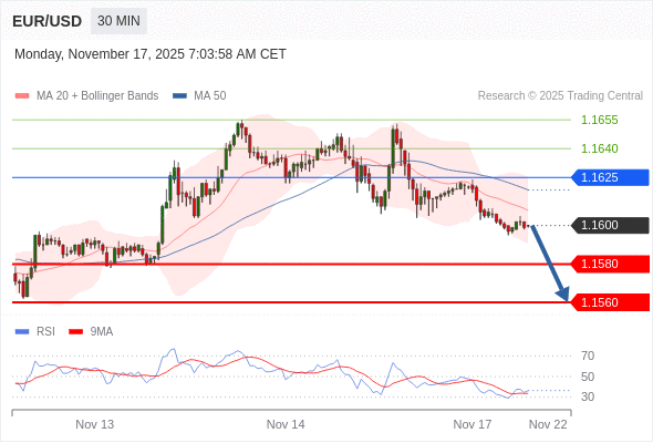 交易策略: 在 1.1625 之下,看跌,目标价位为 1.1580 ,然后为 1.1560 。