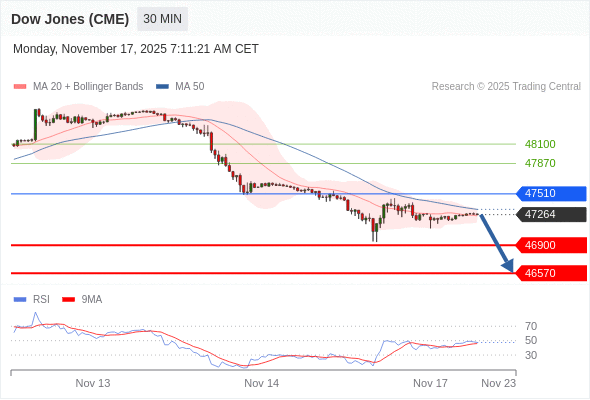 在 47510 之下,看跌,目标价位为 46900 ,然后为 46570 。