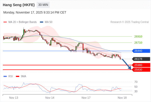 交易策略: 在 26440 之下,看跌,目标价位为 25980 ,然后为 25830 。