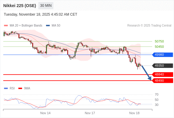 在 49980 之下,看跌,目标价位为 48840 ,然后为 48490 。