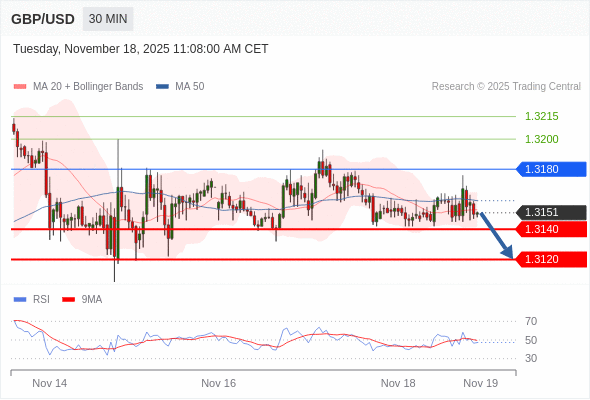 在 1.3180 之下,看跌,目标价位为 1.3140 ,然后为 1.3120 。