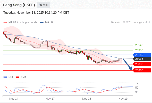 香港恒生指数期货 当日内: 短期关键阻力位在26180。