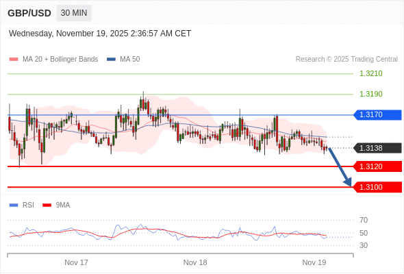 交易策略: 在 1.3170 之下,看跌,目标价位为 1.3120 ,然后为 1.3100 。