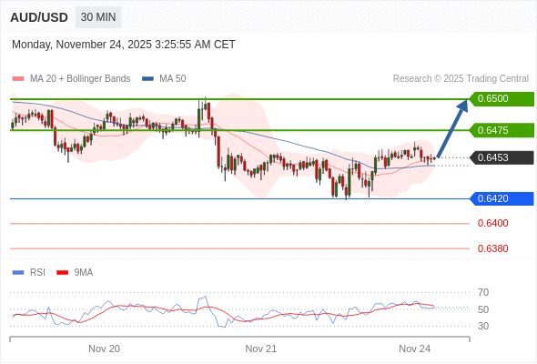在 0.6420 之上,看涨,目标价位为 0.6475 ,然后为 0.6500 。