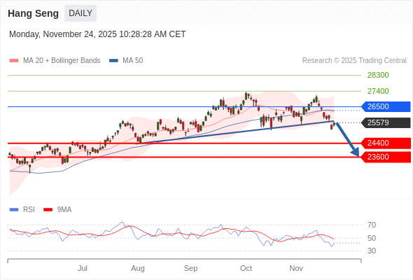 恒生指数 短线: 存在压力。