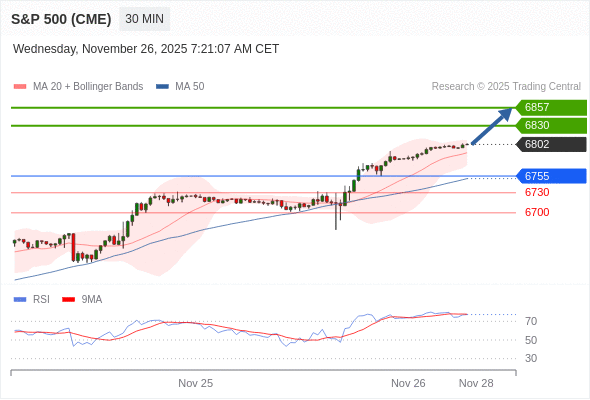 在 6755 之上,看涨,目标价位为 6830 ,然后为 6857 。