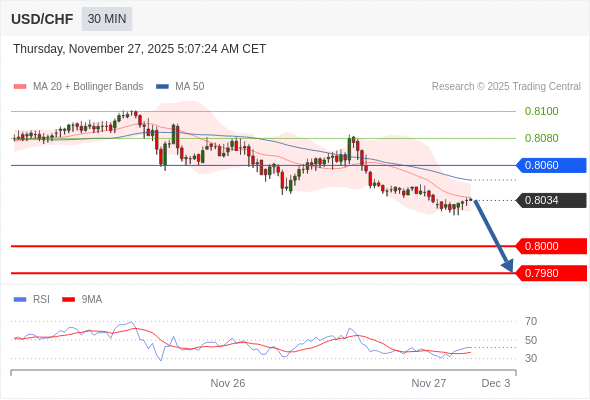 在 0.8060 之下,看跌,目标价位为 0.8000 ,然后为 0.7980 。