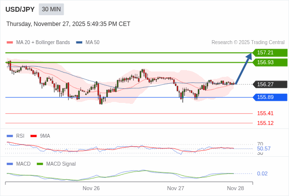美元/日元 当日内 : 看涨,当 155.89 为支撑位。
