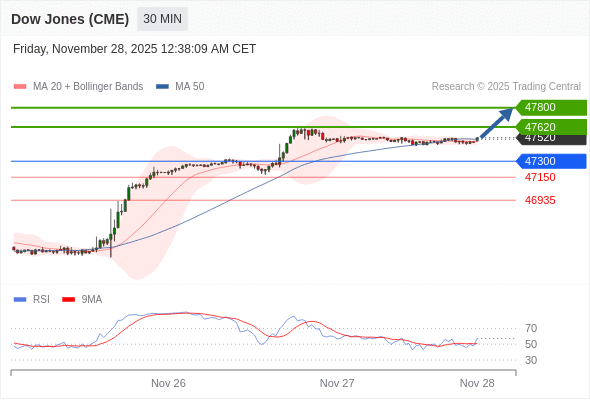 在 47300 之上,看涨,目标价位为 47620 ,然后为 47800 。