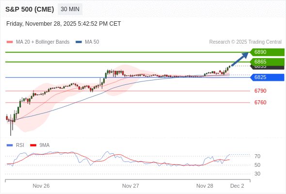 在 6825 之上,看涨,目标价位为 6865 ,然后为 6890 。