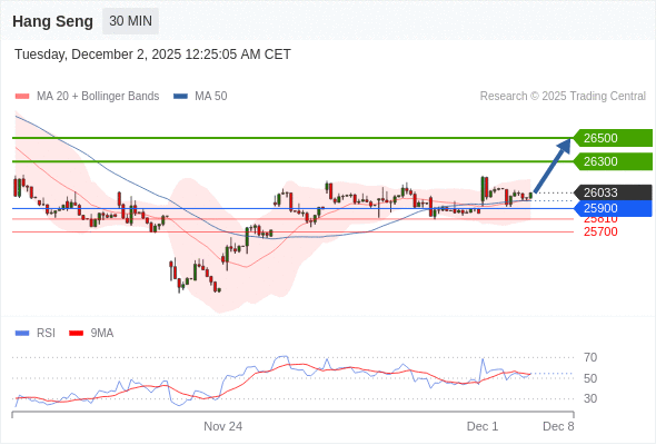 在 25900 之上,看涨,目标价位为 26300 ,然后为 26500 。