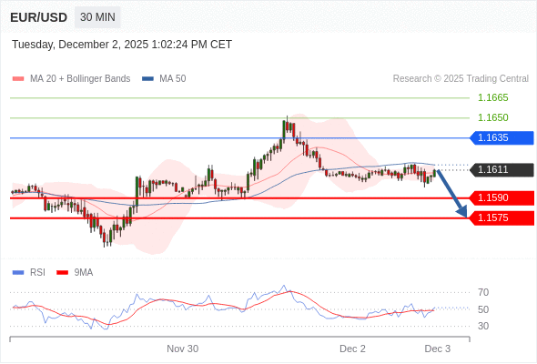 交易策略: 在 1.1635 之下,看跌,目标价位为 1.1590 ,然后为 1.1575 。