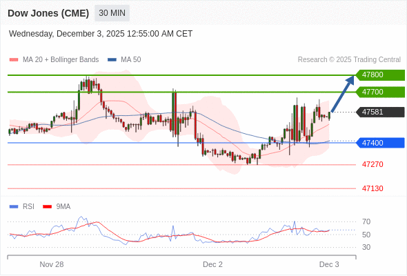在 47400 之上,看涨,目标价位为 47700 ,然后为 47800 。