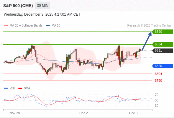 在 6820 之上,看涨,目标价位为 6864 ,然后为 6890 。