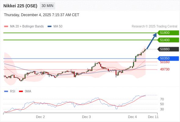 在 50350 之上,看涨,目标价位为 51400 ,然后为 51800 。