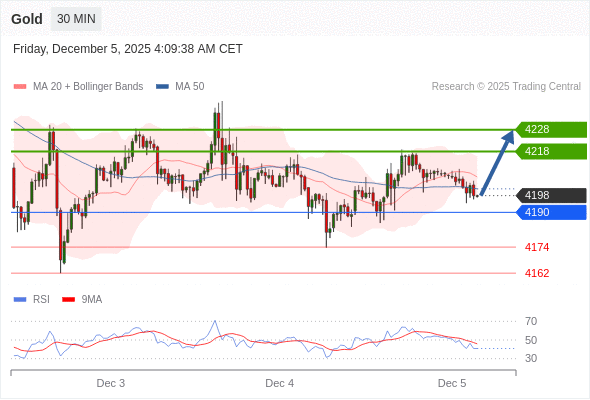 在 4190 之上,看涨,目标价位为 4218 ,然后为 4228 。