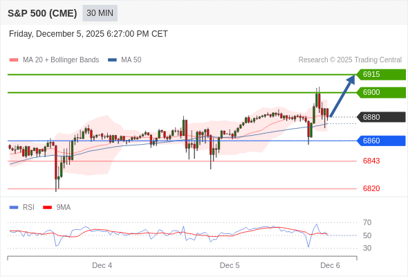 在 6860 之上,看涨,目标价位为 6900 ,然后为 6915 。