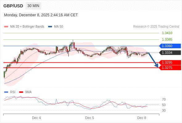 在 1.3360 之下,看跌,目标价位为 1.3290 ,然后为 1.3275 。