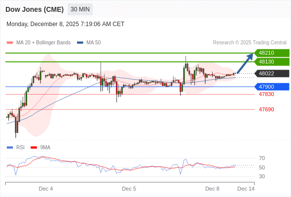 在 47900 之上,看涨,目标价位为 48130 ,然后为 48210 。