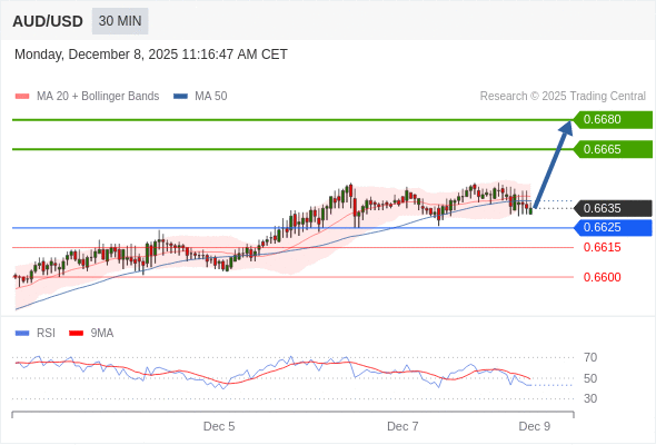 在 0.6625 之上,看涨,目标价位为 0.6665 ,然后为 0.6680 。