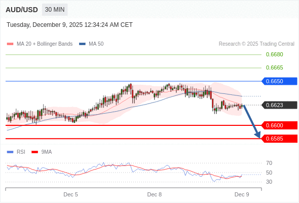 在 0.6650 之下,看跌,目标价位为 0.6600 ,然后为 0.6585 。