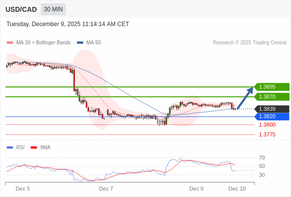 在 1.3820 之上,看涨,目标价位为 1.3870 ,然后为 1.3895 。