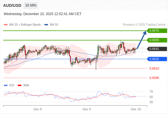 在 0.6625 之上,看涨,目标价位为 0.6655 ,然后为 0.6670 。