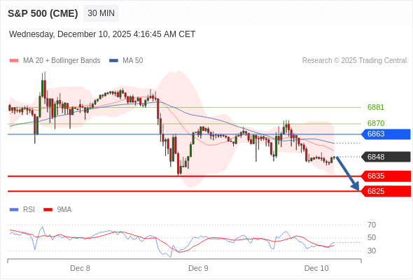 在 6863 之下,看跌,目标价位为 6835 ,然后为 6825 。