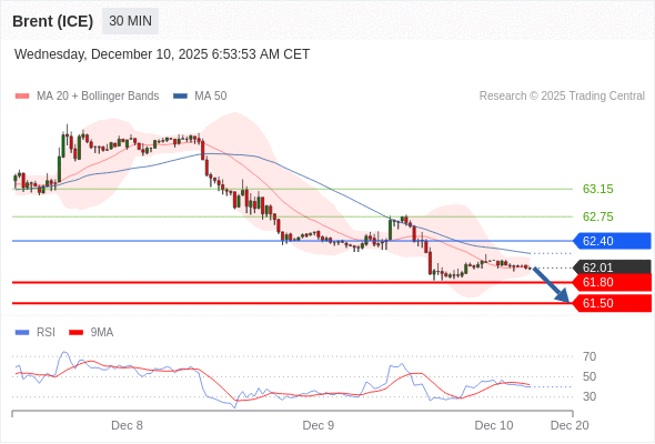 在 62.40 之下,看跌,目标价位为 61.80 ,然后为 61.50 。