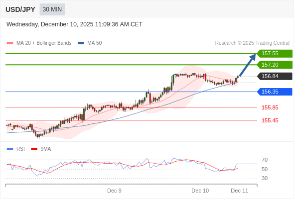 在 156.35 之上,看涨,目标价位为 157.20 ,然后为 157.55 。