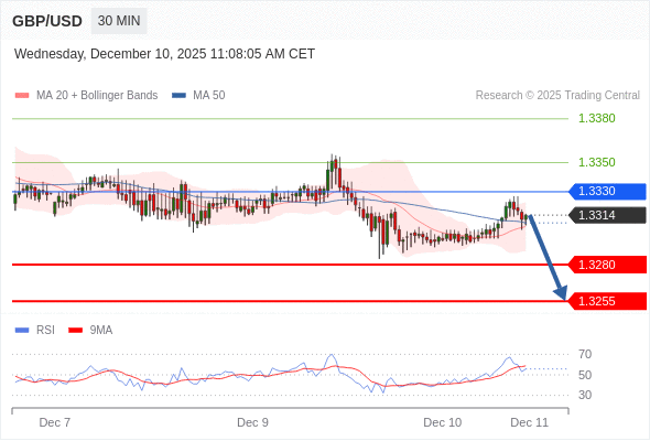 在 1.3330 之下,看跌,目标价位为 1.3280 ,然后为 1.3255 。