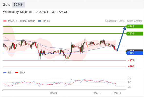 在 4190 之上,看涨,目标价位为 4231 ,然后为 4246 。