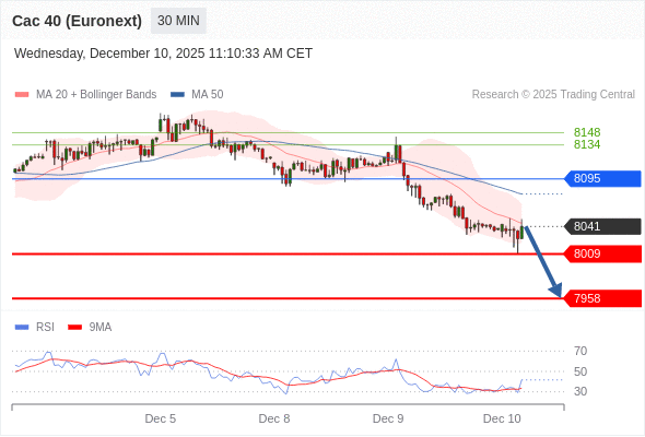 在 8095 之下,看跌,目标价位为 8009 ,然后为 7958 。