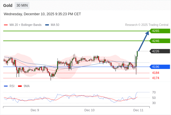在 4196 之上,看涨,目标价位为 4246 ,然后为 4265 。