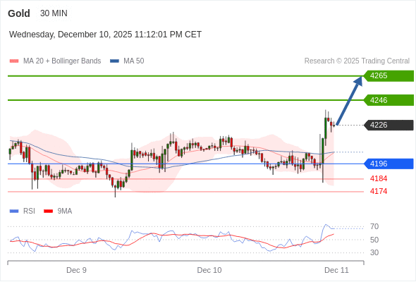 在 4196 之上,看涨,目标价位为 4246 ,然后为 4265 。