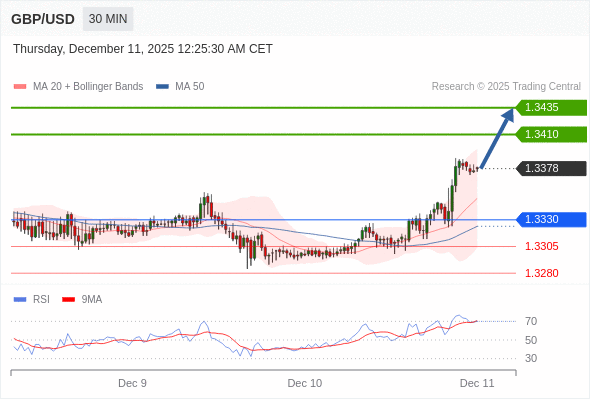 在 1.3330 之上,看涨,目标价位为 1.3410 ,然后为 1.3435 。
