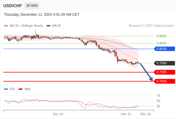 在 0.8030 之下,看跌,目标价位为 0.7965 ,然后为 0.7940 。