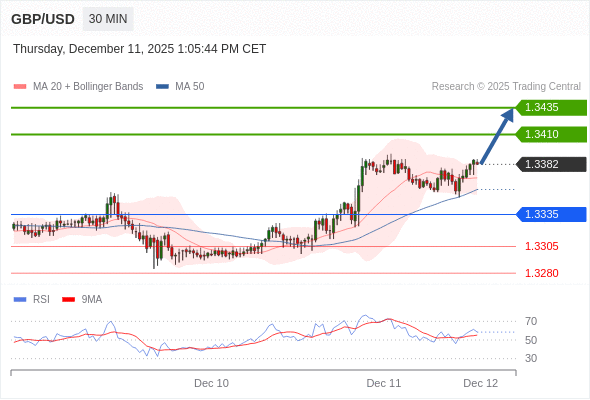 在 1.3335 之上,看涨,目标价位为 1.3410 ,然后为 1.3435 。