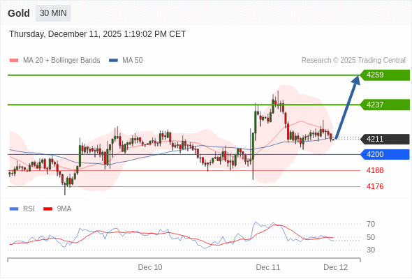 在 4200 之上,看涨,目标价位为 4237 ,然后为 4259 。