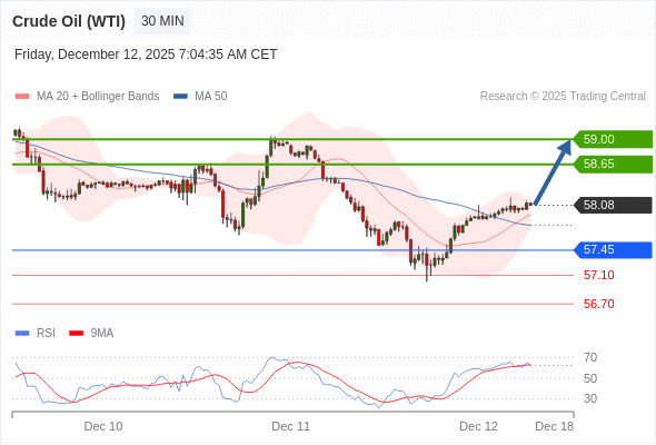 在 57.45 之上,看涨,目标价位为 58.65 ,然后为 59.00 。