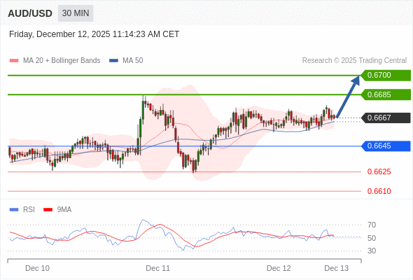 在 0.6645 之上,看涨,目标价位为 0.6685 ,然后为 0.6700 。