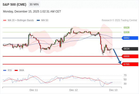 在 6882 之下,看跌,目标价位为 6800 ,然后为 6765 。