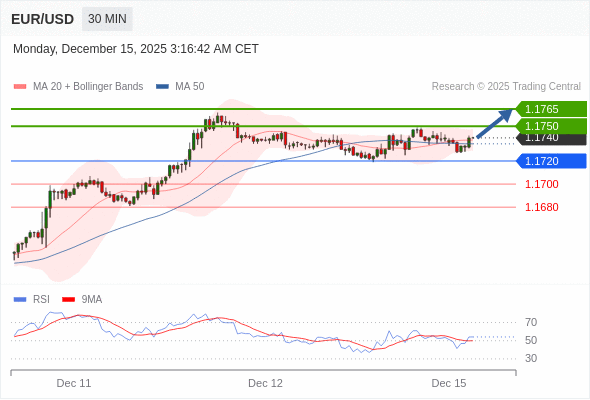 欧元/美元 当日内: 朝1.1750运行。