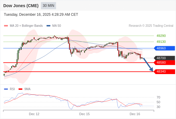 在 48960 之下,看跌,目标价位为 48580 ,然后为 48340 。